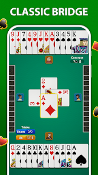 Bridge - Kart Oyunu, Rubber Bridge dünyasına adım atmanızı sağlayan bir Android uygulamasıdır. Oyuncular, iyi ayarlanmış yapay zeka rakiplerle karşı karşıya gelirken, SAYC teklif sistemini destekleyen ve detaylı puan dökümü sunan bir oyun deneyimi yaşarlar. Hem deneyimli oyuncular hem de yeni başlayanlar için rehberlik sistemi, oyuncunun yetenek seviyesine uyum sağlayarak öğrenme sürecini kolaylaştırır.